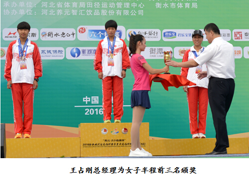 經(jīng)過激烈角逐,各比賽項目都賽出了較好的成績,酒業(yè)公司總經(jīng)理王占剛為女子半程馬拉松賽獲獎選手頒發(fā)了獎杯。