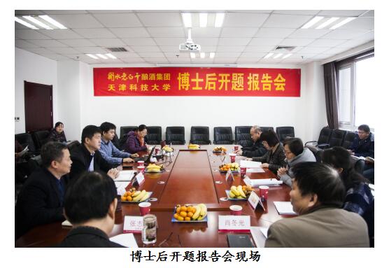 2017年12月20日上午,公司博士后開題報告會在酒都大廈1004會議室隆重召開,出席會議的有天津科技大學(xué)王敏院長、肖東光教授、趙樹欣教授、陳葉福教授、劉璐璐處長,集團(tuán)公司副董事長張志民、酒業(yè)公司總經(jīng)理王占剛、酒業(yè)公司常務(wù)副總張煜行、技術(shù)中心主任李澤霞等。