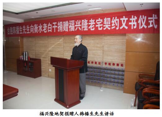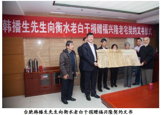 臺(tái)胞韓播生先生向衡水老白干捐贈(zèng)福興隆老宅契約文書儀式